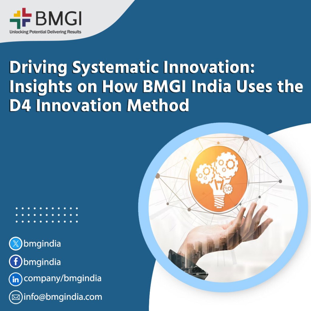 Many people consider innovation the result of luck and creativity. However, organizations targeting consistent and scalable breakthroughs consider innovation as a process. Moreover, BMGI India addresses this particular challenge using the D4 Innovation Method – which attempts to morphologize innovation into a repeatable, organization-wide capability system through a structured approach.